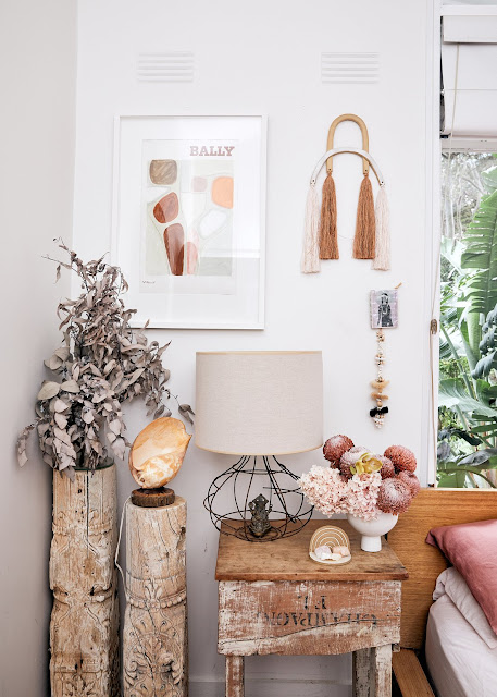 I recently came across her home again featured on the Bed Threads Journal and I loved the decor changes she has made to it. Lots of textures and wood added, warmer tones and pops of colour.